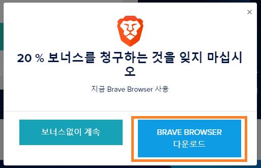 2) 브레이브 브라우저 다운로드 및 실행 > 호라이젠 파우셋 접속 > 로그인