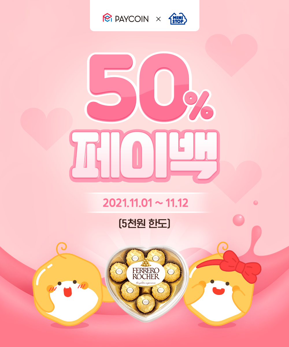 - 페레로로쉐 8T 50% 페이백(기간내 5천원 한도) : 2021.11.01 ~ 2021.11.12