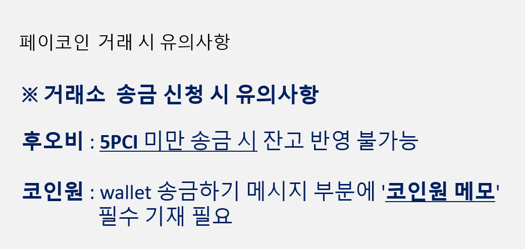 ▶ 페이코인 거래소 송금 신청시 유의사항 / 거래소별 정책