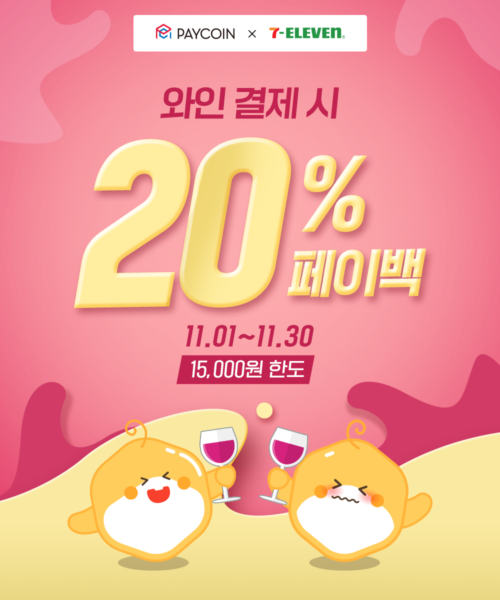 *본 이벤트는 페이코인으로 세븐일레븐 [11월 이달의 와인] 결제 시에만 적용되며, 그 외 상품 결제 시에는 미적용.