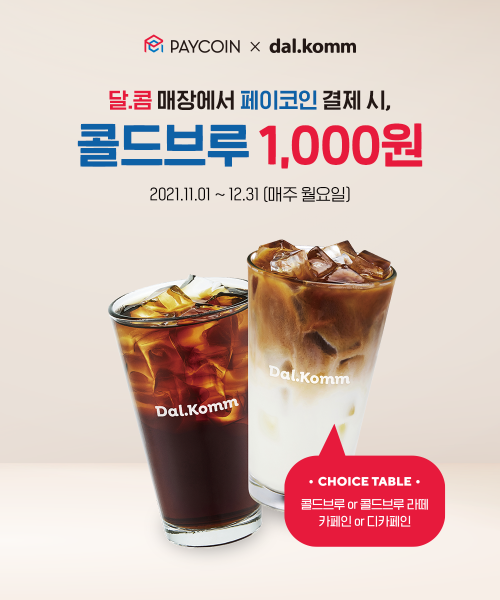 페이코인 앱 신규가입 시, 리워드코드 입력란에 'DALKOMM' 입력하면 1PCI + 달콤 시즌메뉴 무료쿠폰 증정!