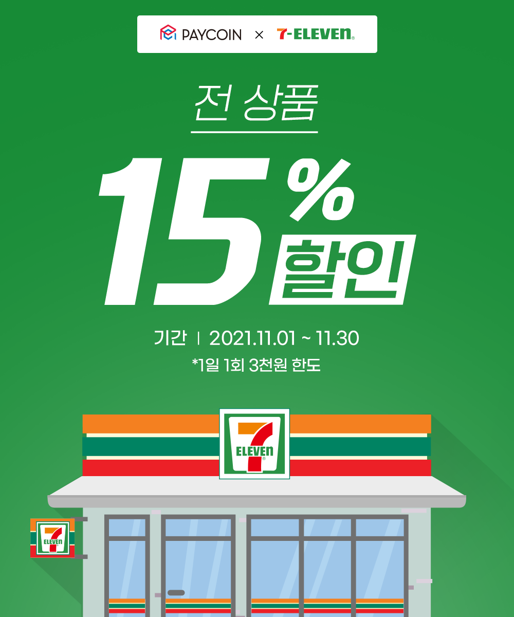 [세븐일레븐] 전상품 15% 할인 : 2021.11.01 ~ 2021.11.30