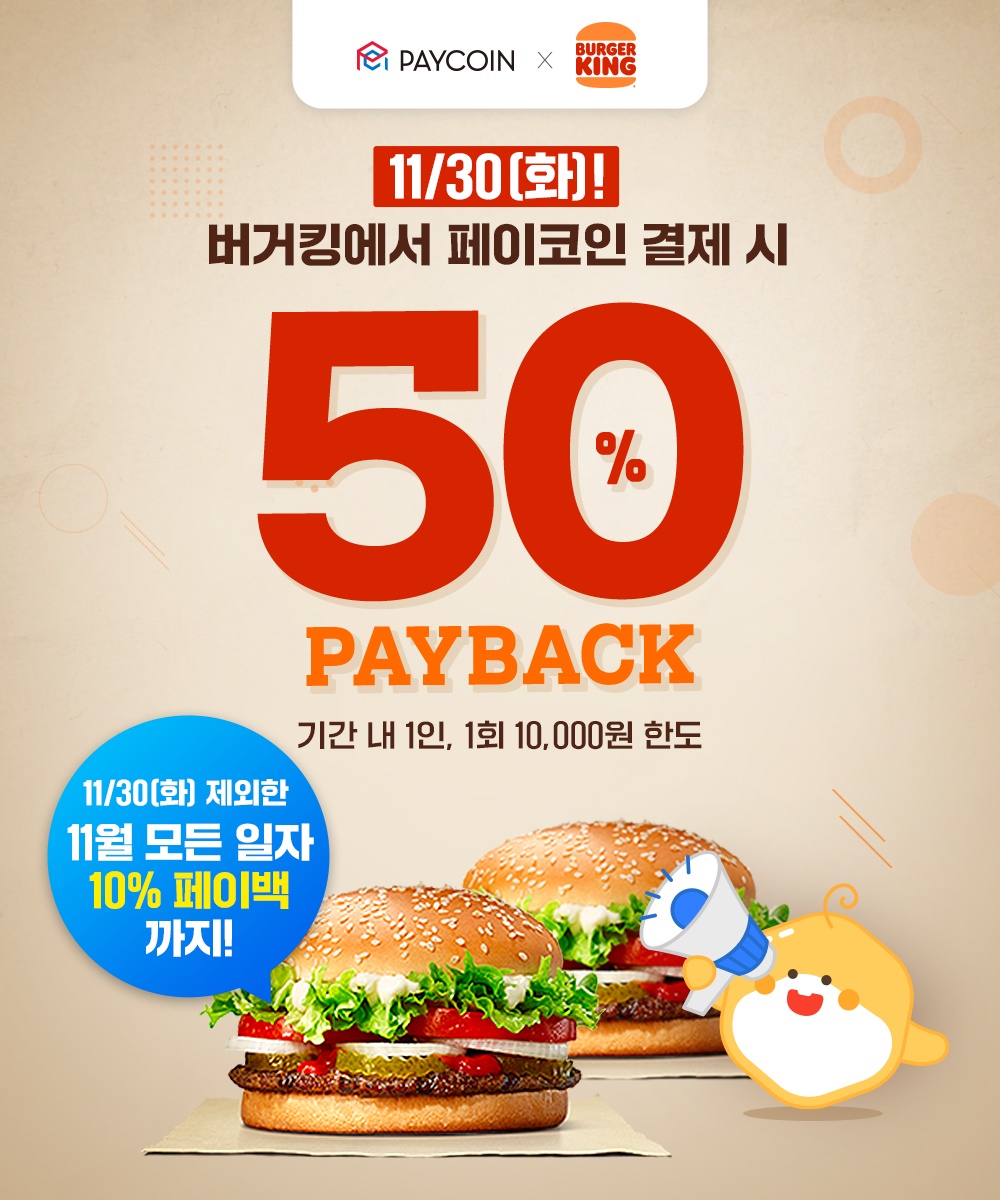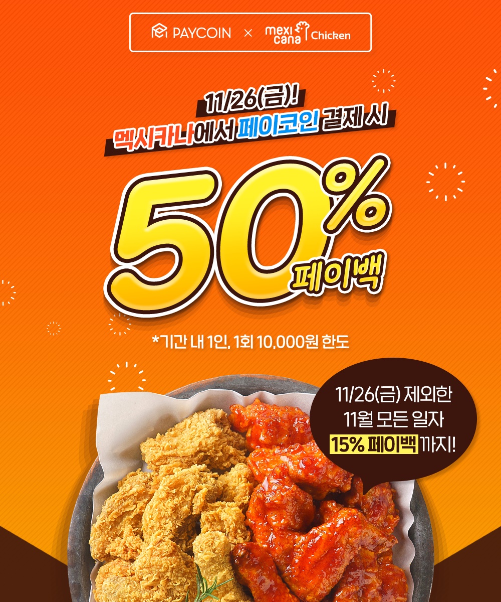 *50% 페이백 이벤트 일정 : 11/8, 11/15, 11/22, 11/29