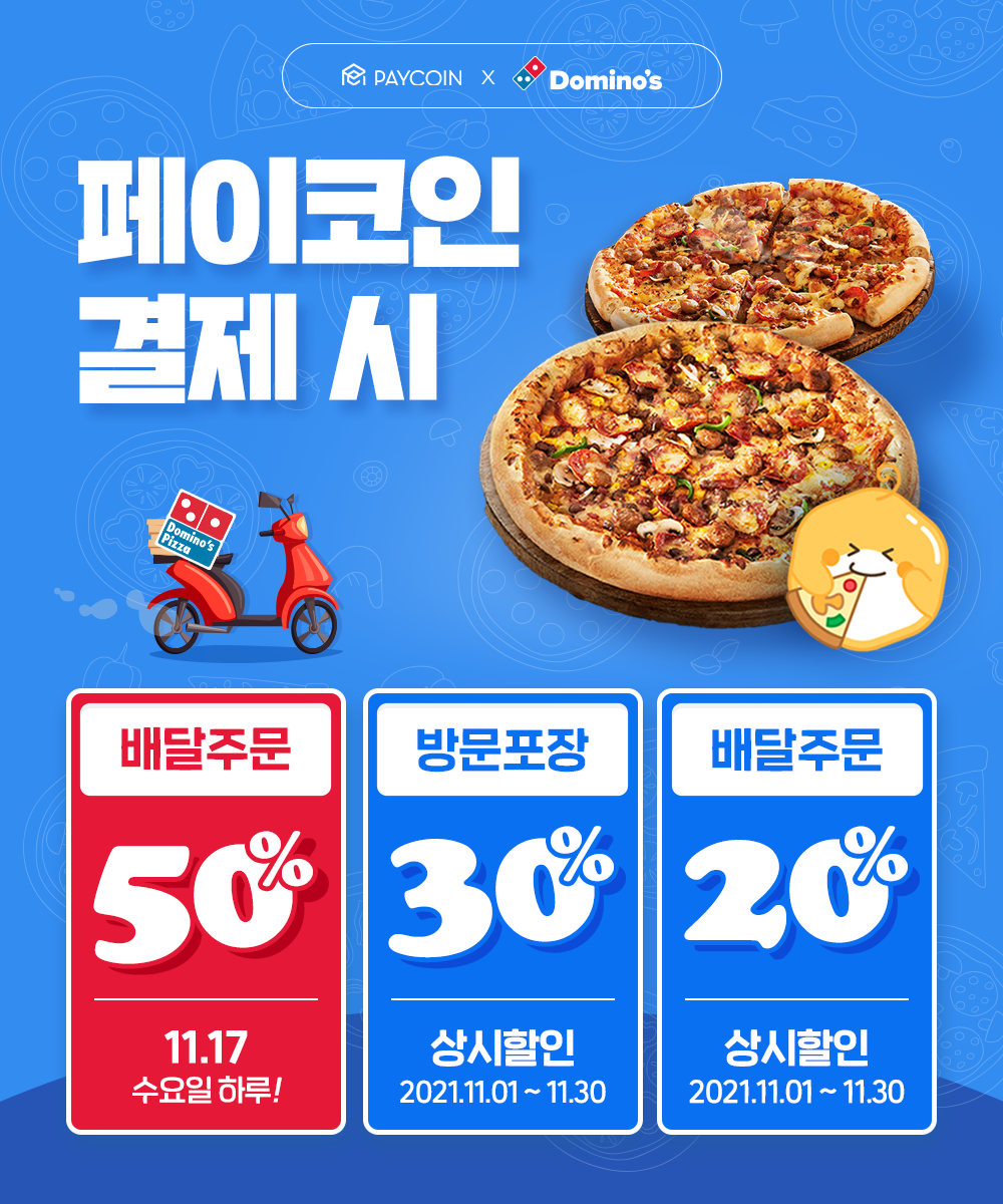 - 매주 월요일 전메뉴 50% 페이백(1일 3천원 한도/11월 1일 제외) : 2021.11.01 ~ 2021.11.30