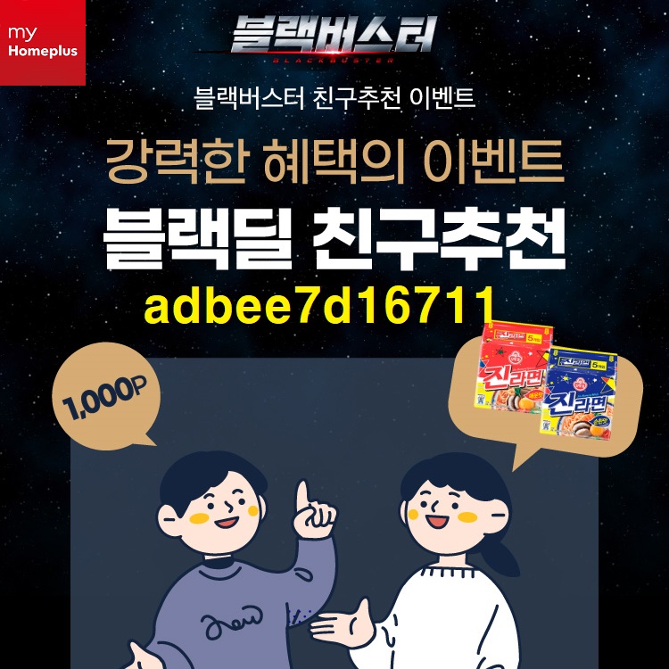 홈플러스 블랙딜 친구추천 이벤트 ( 추천코드 : adbee7d16711 )