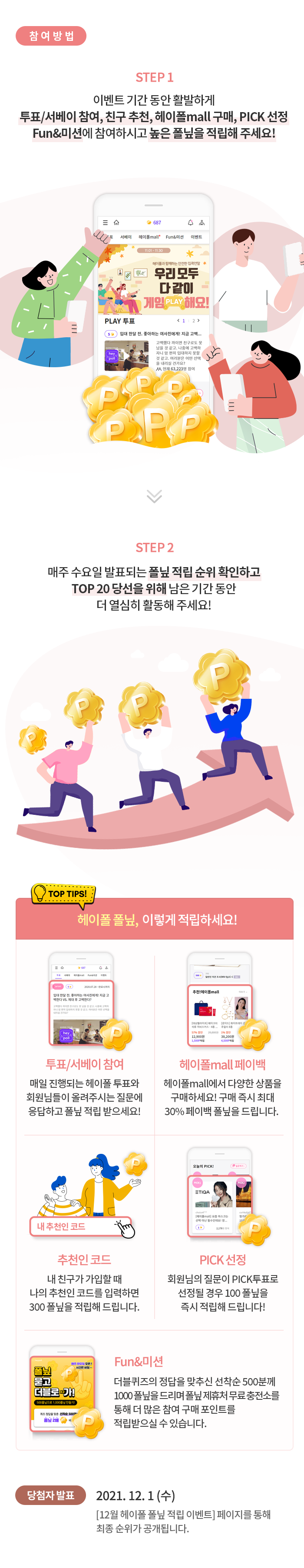 4) 당첨자 발표 : 2021. 12. 1(수) (12월 헤이폴 폴닢 적립 이벤트 페이지를 통해 최종 순위 공개)