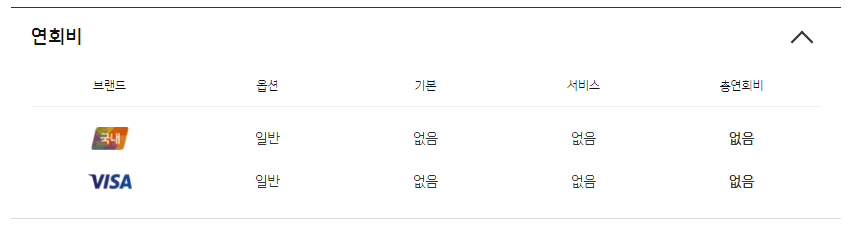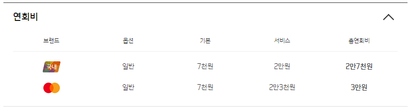 - 연회비는 카드 별로 기본 연회비와 서비스 연회비를 합산한 총 연회비가 청구.