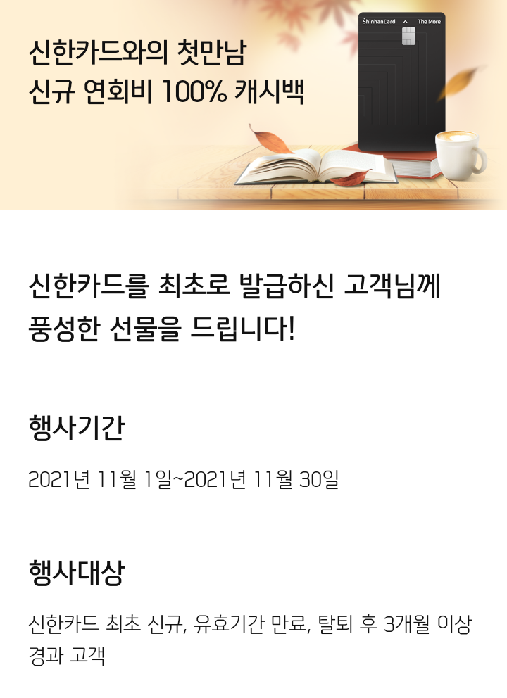 현재 신한카드에서 연회비 캐시백 이벤트 중인 카드 종류 및 연회비에 대해서 정리해 보았다.