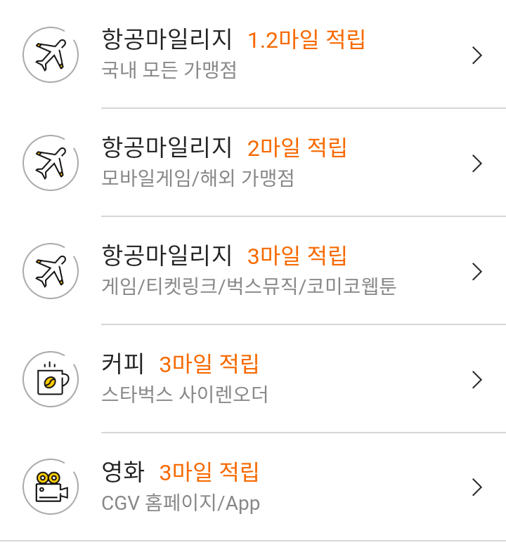 - 아시아나 마일리지 1.2마일 적립(국내 모든 가맹점)
