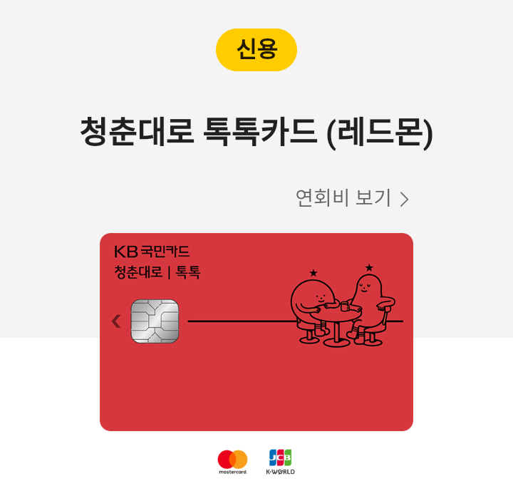 [청춘대로 톡톡카드 (레드몬)] 스타벅스 50%, 버거/패스트푸드 20%, 간편결제 Pay 10% - KB 국민카드