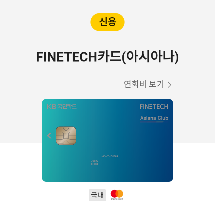 [FINETECH카드(아시아나)] 국내이용 1.2마일, 해외이용 2마일, 게임/커피/영화 3마일 - KB 국민카드