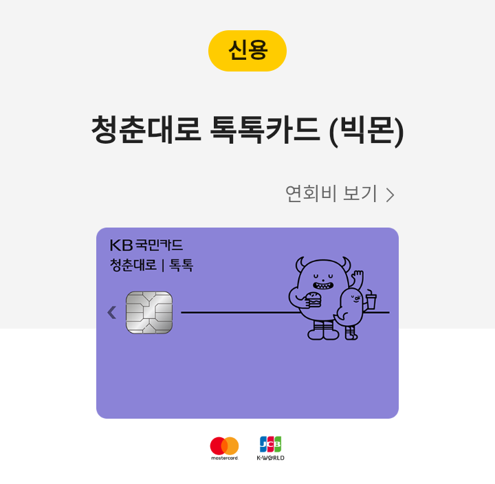 [청춘대로 톡톡카드 (빅몬)] 스타벅스 50%, 버거/패스트푸드 20%, 간편결제 Pay 10% - KB 국민카드