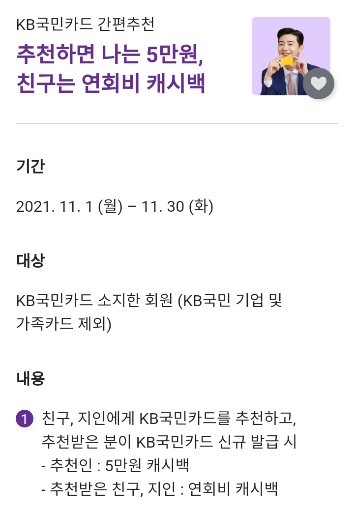 1) 친구, 지인에게 KB국민카드를 추천하고, 추천받은 분이 KB국민카드 신규 발급 시