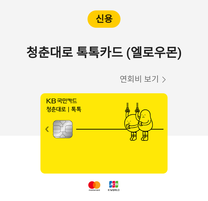 [청춘대로 톡톡카드 (엘로우몬)] 스타벅스 50%, 버거/패스트푸드 20%, 간편결제 Pay 10% - KB 국민카드