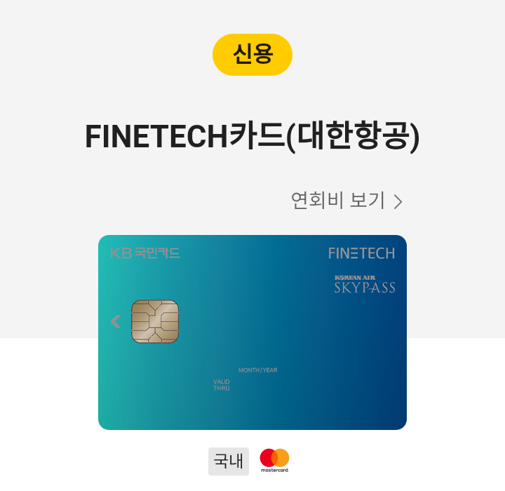 [FINETECH카드(대한항공)] 국내이용 1.2마일, 해외이용 2마일, 게임/커피/영화 3마일 - KB 국민카드