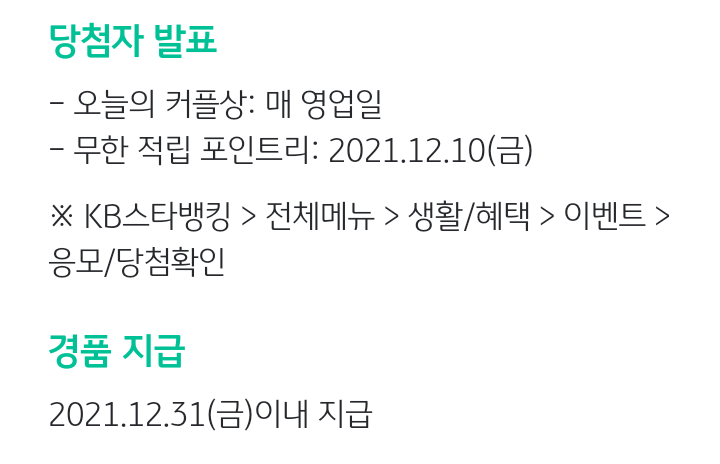 ※ KB스타뱅킹>전체메뉴>생활/혜택>이벤트>응모/당첨확인