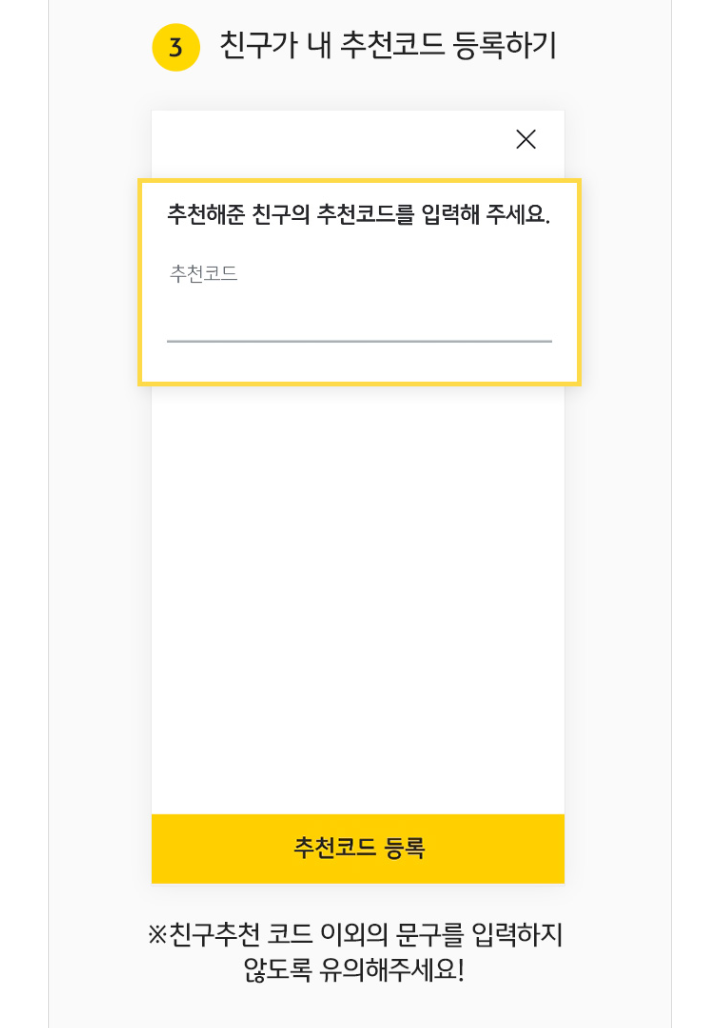 ③ 추천받은 고객이 페이지 내에 '친구 추천코드 등록'하기