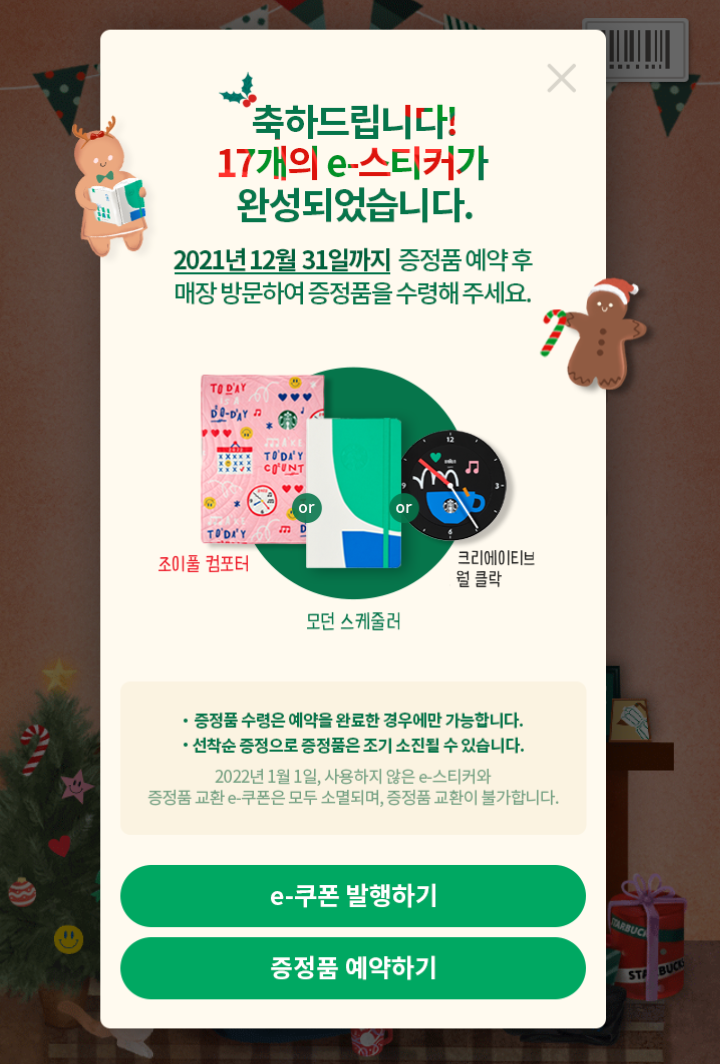 ▷ 스타벅스 2021 윈터 e-프리퀀시(스타벅스 컴포터, 플래너, 아날로그 클락)(10.28~12.31) : https://barista7.tistory.com/5076