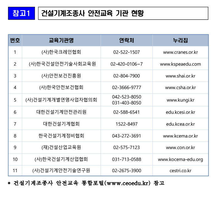 ▣ 건설기계조종사 안전교육 기관 현황(연락처, 홈페이지)
