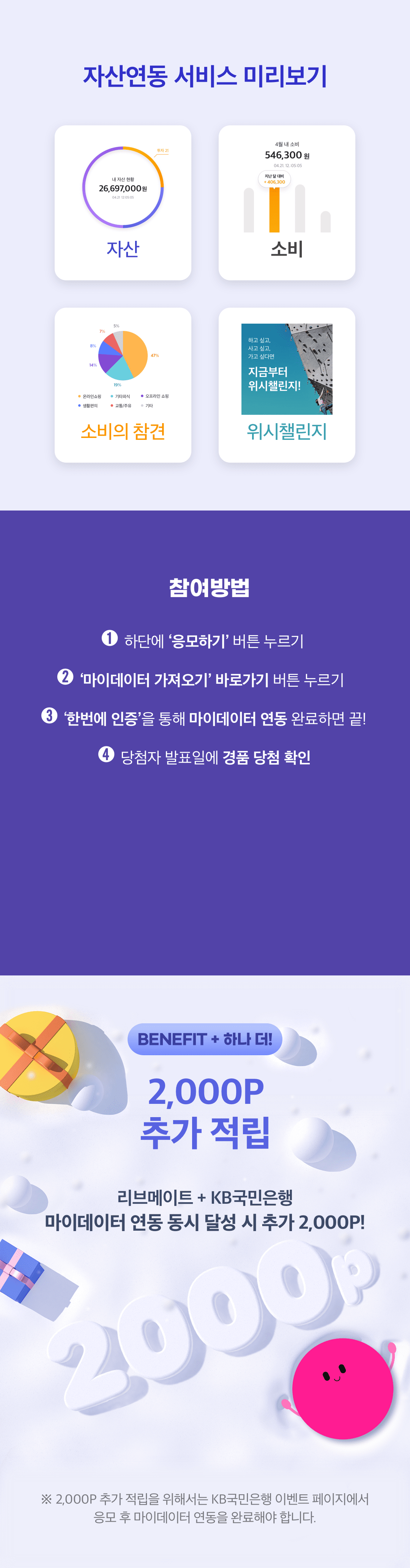3) 2000P 추가 적립, 리브메이트+KB국민은행 마이데이터 연동 동시 달성 시 추가 2000P!