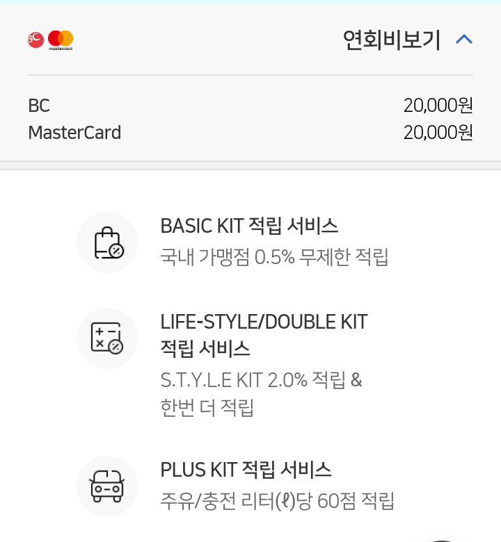 - BASIC KIT 적립 서비스 : 국내 가맹점 0.5% 무제한 적립