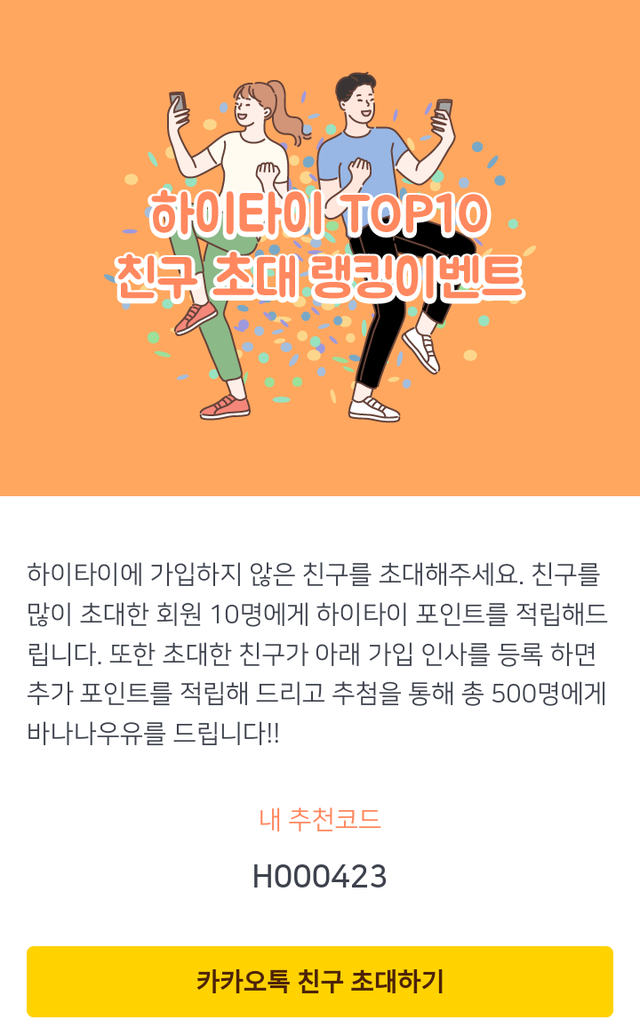앱테크, 하이타이(Hitai) 친구초대 랭킹이벤트( 추천 코드 : H000423 )