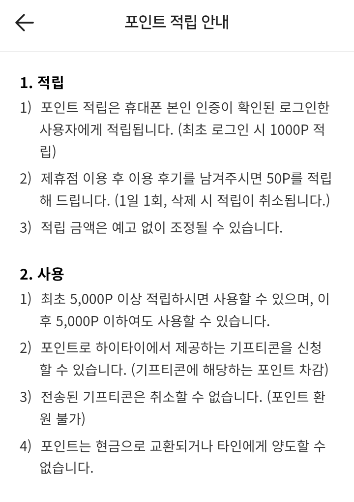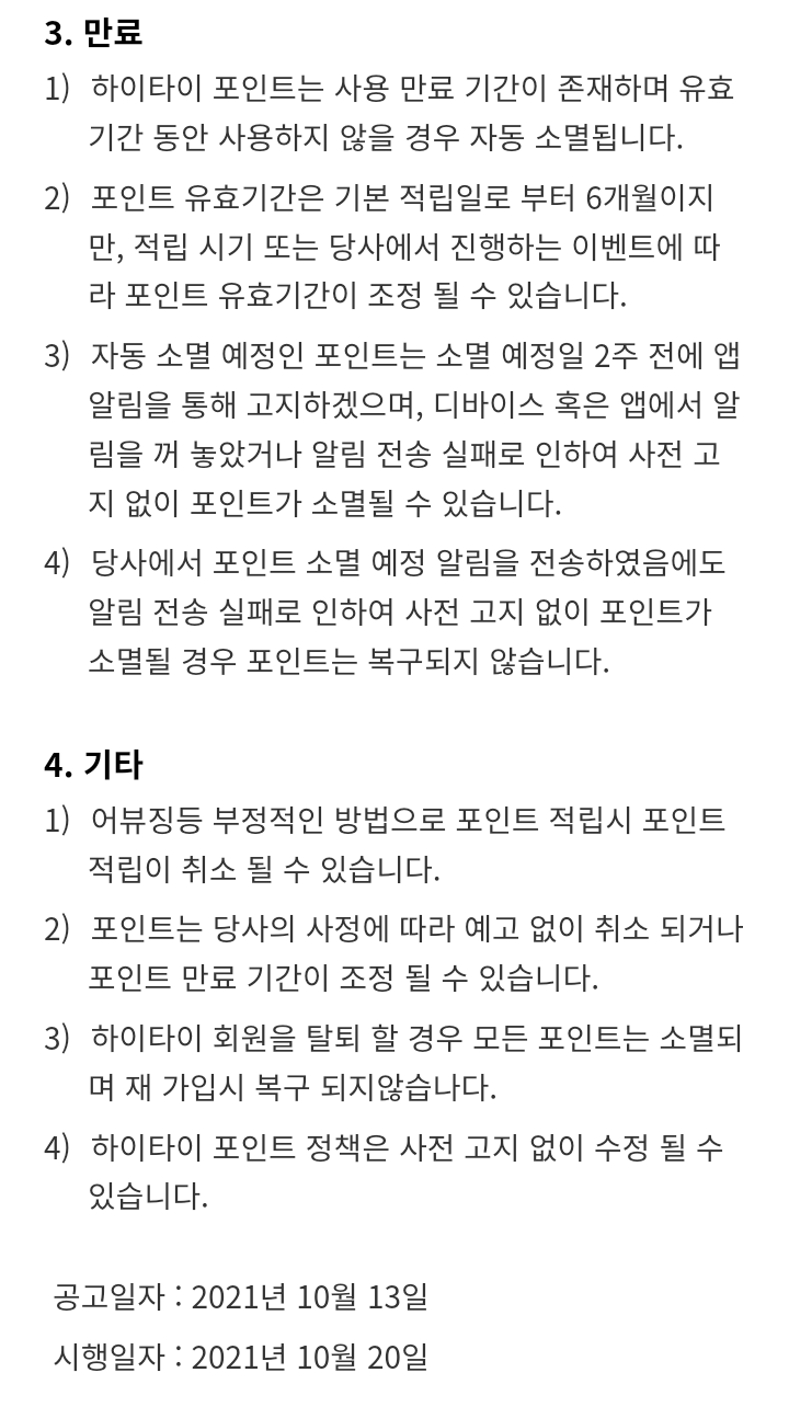 1) 하이타이 포인트는 사용 만료 기간이 존재하며 유효기간 동안 사용하지 않을 경우 자동 소멸된다.