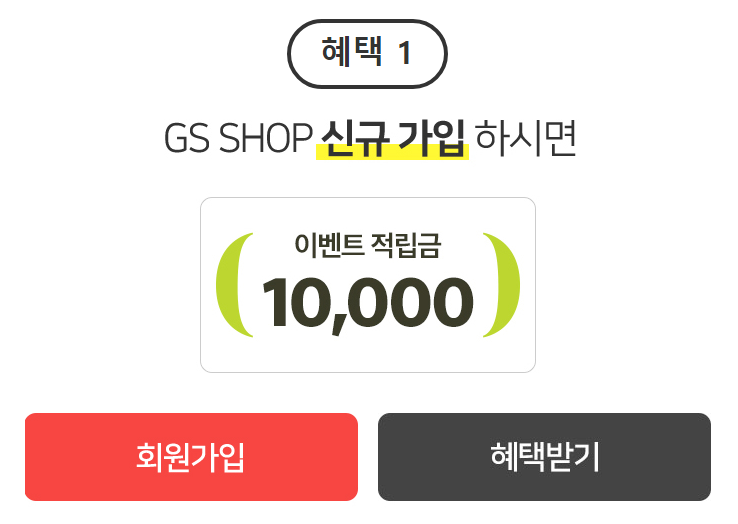 GS SHOP에서 가입축하금 1만원과 추가혜택을 받아보세요.