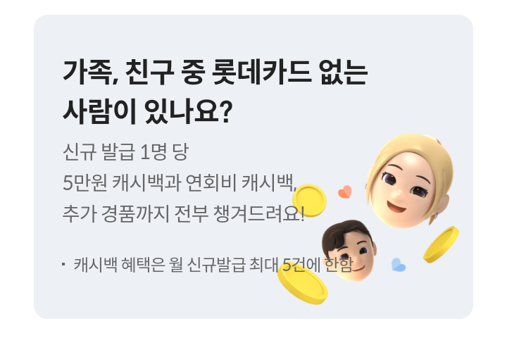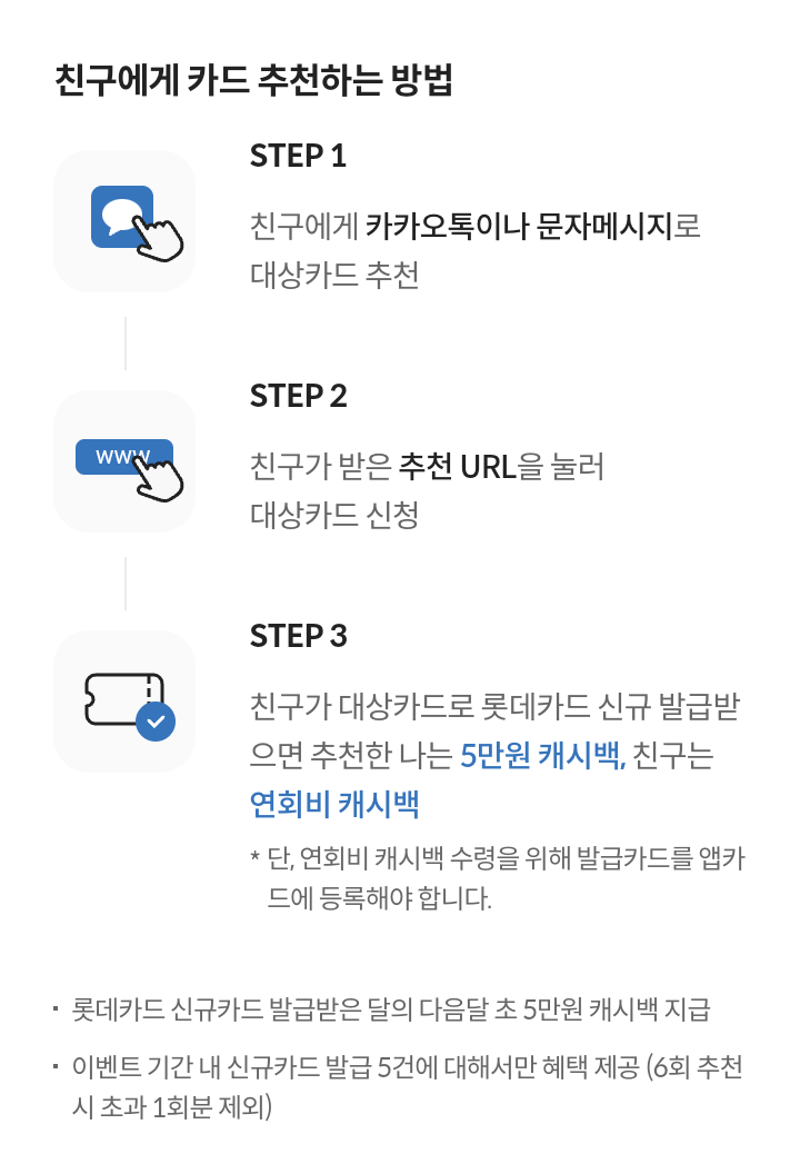 - 대상/대상카드 : 롯데카드 회원 / 친구에게 카드 추천 대상카드
