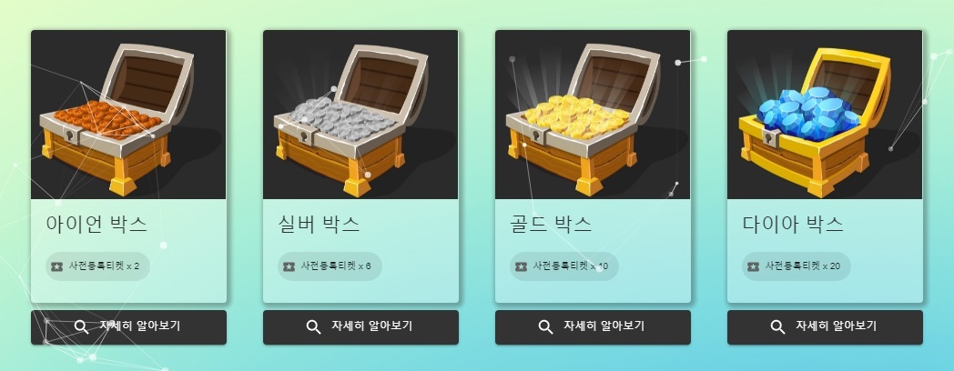 신청을 완료하시는 즉시 사전등록티켓 2장을 지급하고 추천인 1명을 모집하실 때마다 추가 사전등록티켓을 1장씩 지급합니다. 사전등록 종료 후 사전등록티켓을 이용하여 등급별 사전등록박스를 오픈하실 수 있습니다.