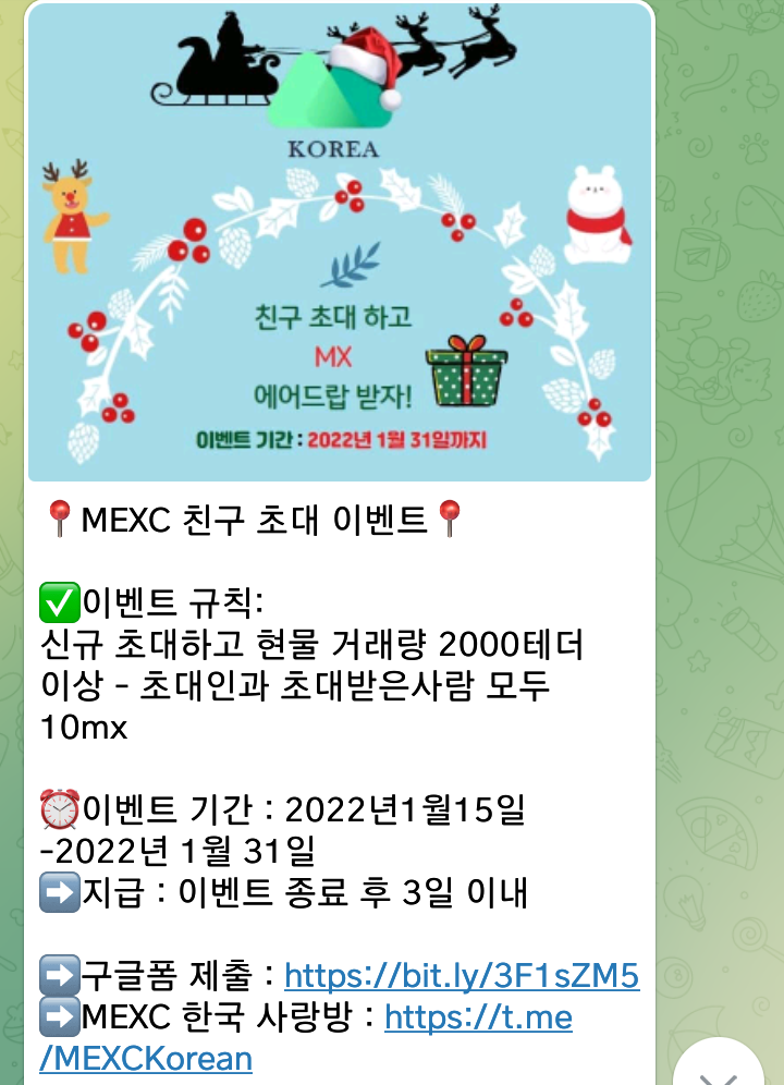 - MEXC 한국 공식방 : https://t.me/MEXCKorean
