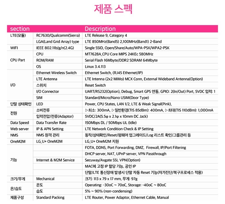 씨앤에스링크 LTE라우터 CNR-L580W 스펙, 주요기능