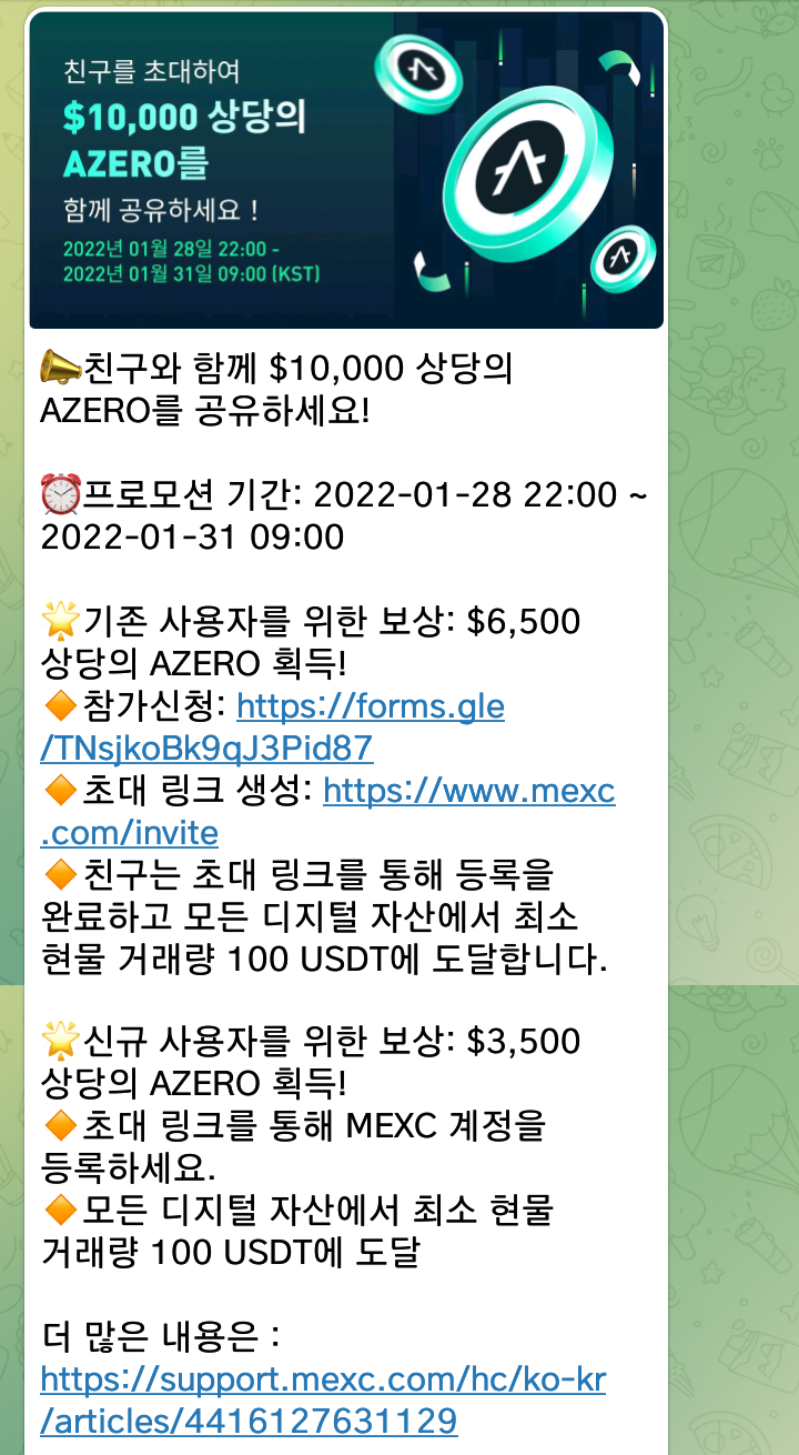 앱테크, MEXC 거래소 친구초대 이벤트, AZERO 에어드랍( 추천 코드 : 1LCc2 )