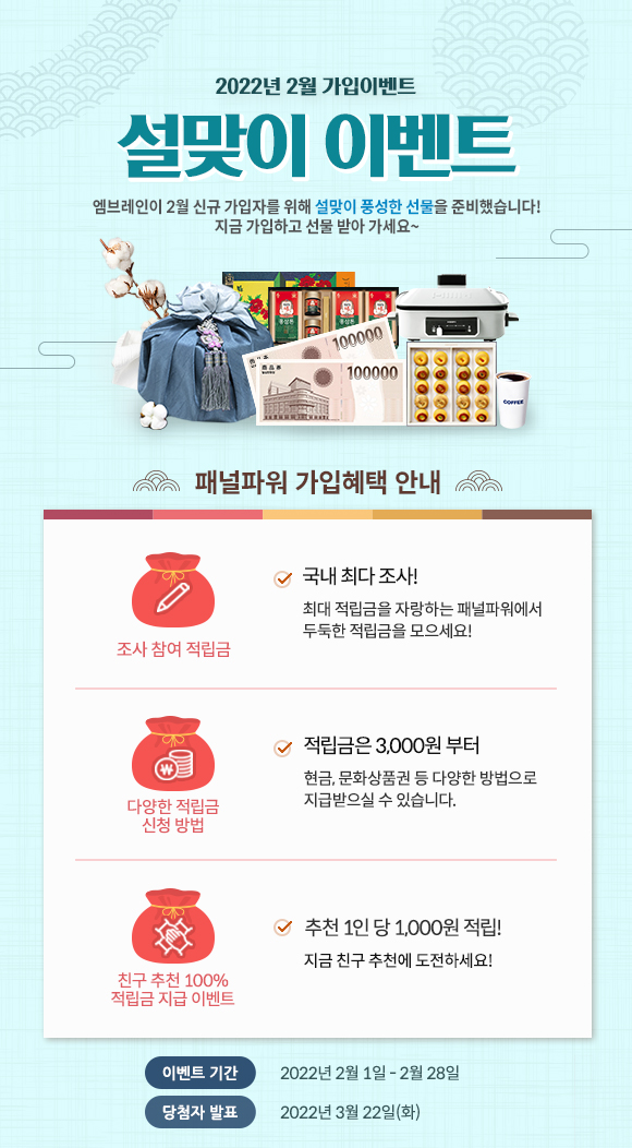 앱테크, 엠브레인 패널파워 2022년 2월 설맞이 이벤트