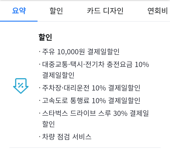 - 주차장·하이패스·대리운전 10% 결제일할인
