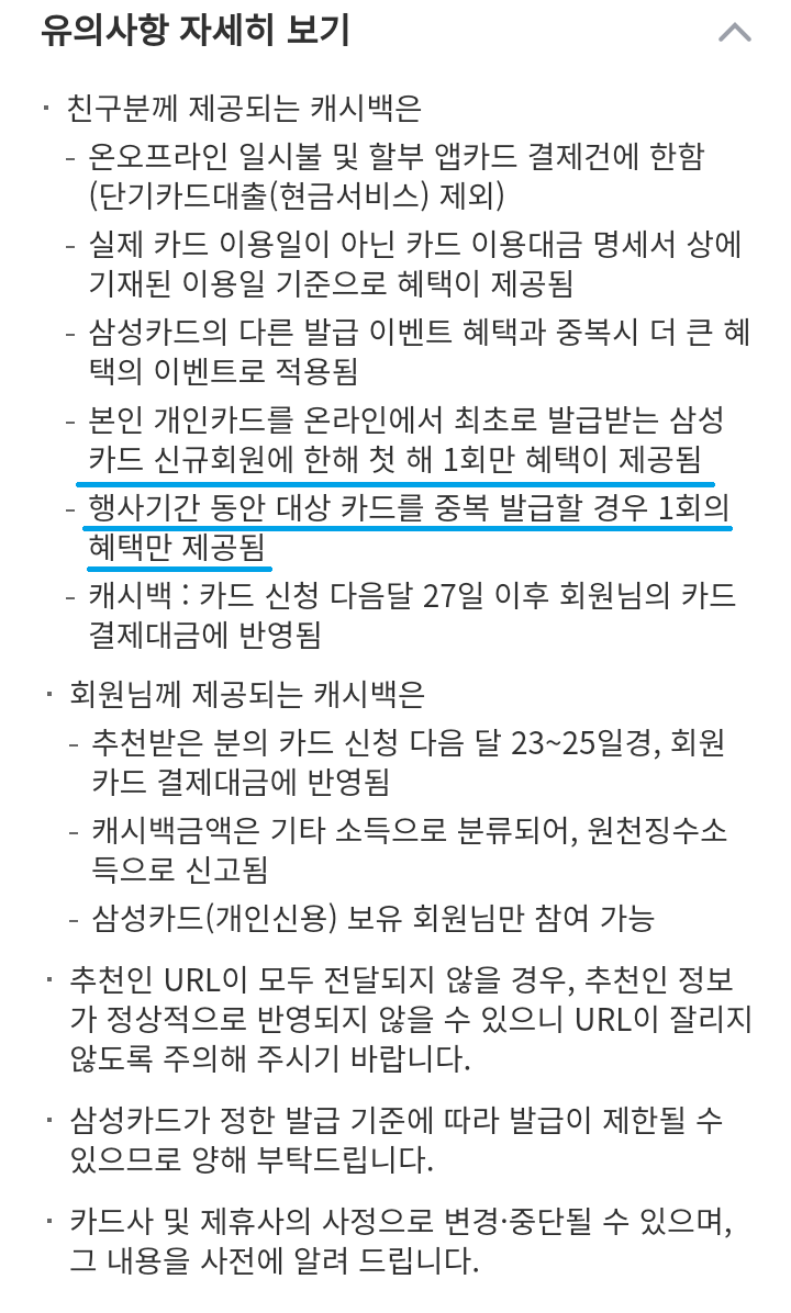 (예 : 행사기간(2022년 1월 1일 ~ 12월 31일) 내 11회 추천 시, 초과하는 1건에 대해서는 캐시백 미지급)