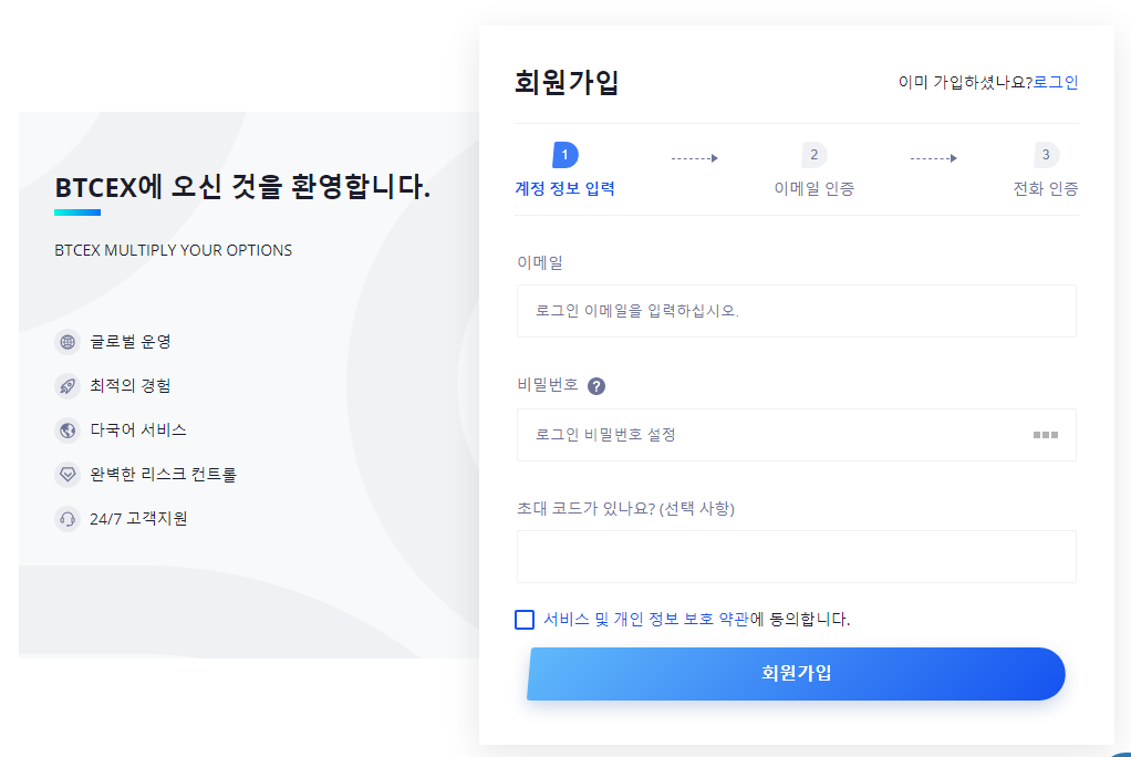 - 홈페이지 : https://www.btcex.com/ko-kr/