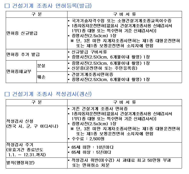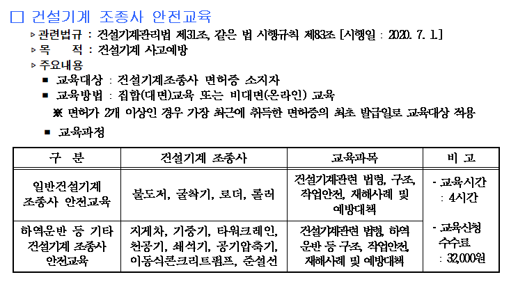 - 대상 : 불도저, 굴착기, 로더, 롤러 건설기계 조종사