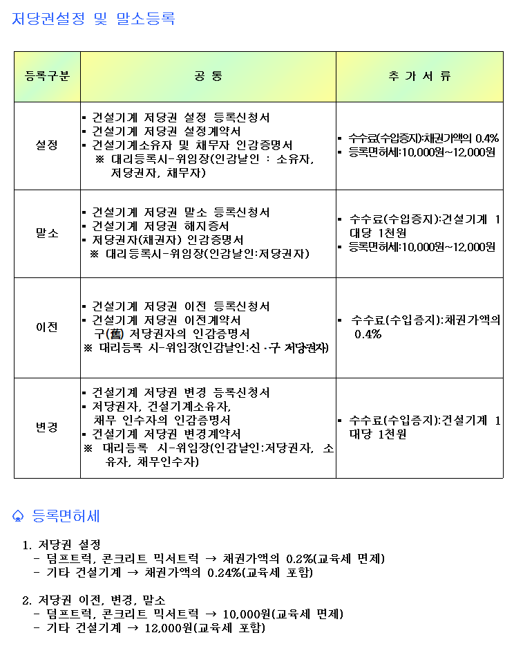 - 국민주택채권: 건설기계 구입액의 0.5%