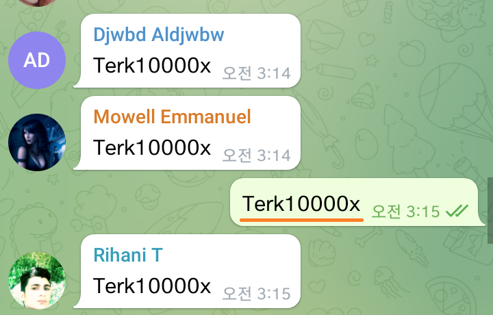 3) 그룹 입장후 채팅창에 " Terk10000x " 라고 채팅 한번하기