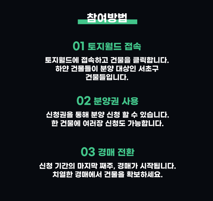 지금 바로 접속하고 분양신청하세요. 토지 월드에서는 여러분도 건물주가 될 수 있습니다.