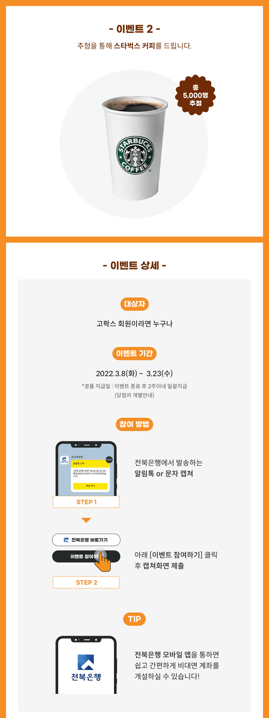 - 추첨을 통해 스타벅스 커피 지급(총 5000명 추첨)