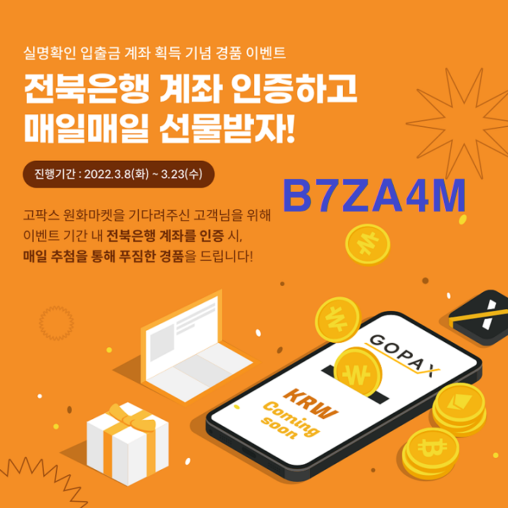 앱테크, 고팍스 전북은행 계좌인증 경품 이벤트( 추천코드 : B7ZA4M )