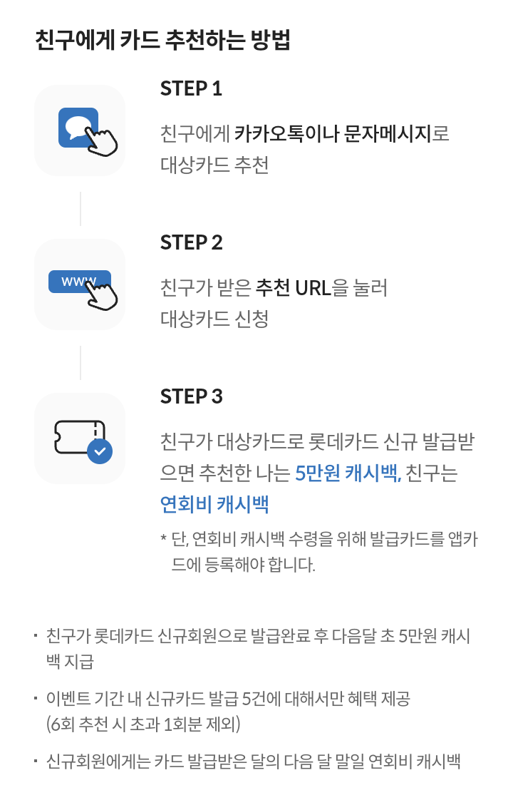 - 대상/대상카드 : 롯데카드 회원 / 친구에게 카드 추천 대상카드