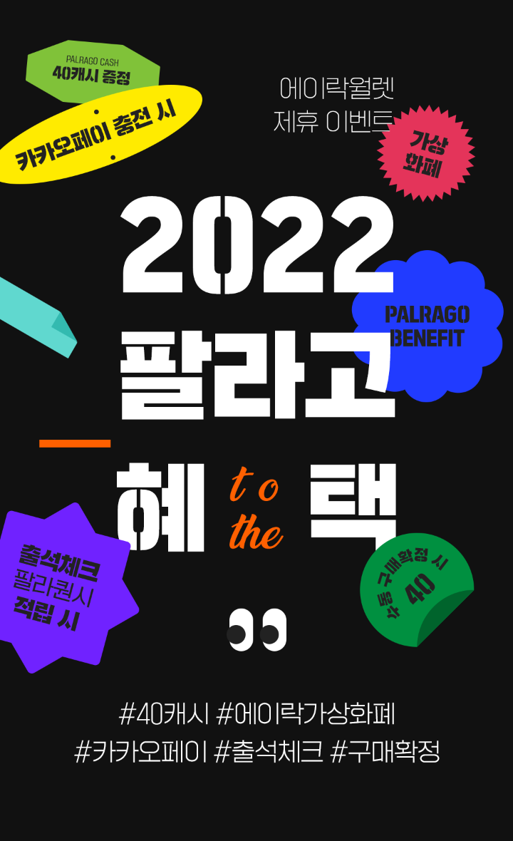 팔라고 이벤트 끝나기 전에 1000캐시도 받고, 다양한 이벤트 참여해 보세요.