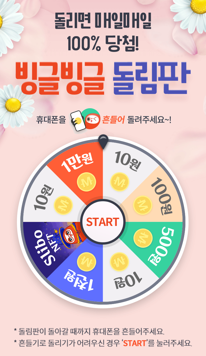 - 돌림판을 돌리면 매일 100% 머니트리 캐시 당첨