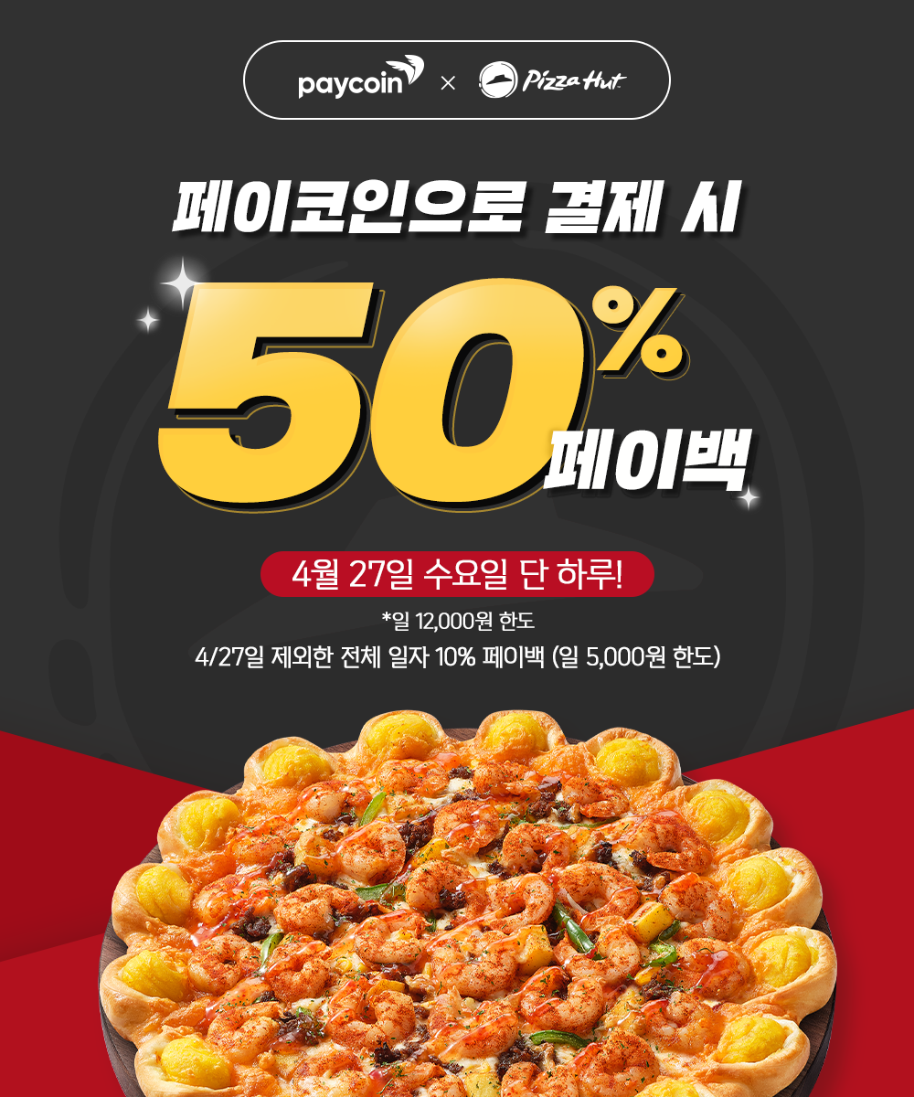 [피자헛] 50% 페이백! : 2022.04.26 ~ 2022.04.30