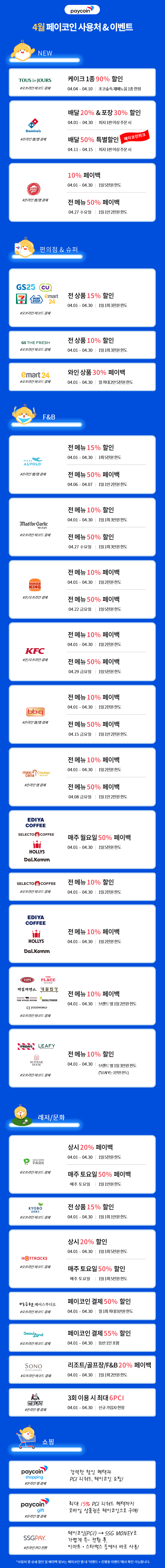 2022년 4월 페이코인에서 할인, 페이백, 출석 룰렛이벤트 등의 다양한 이벤트가 진행중이다.