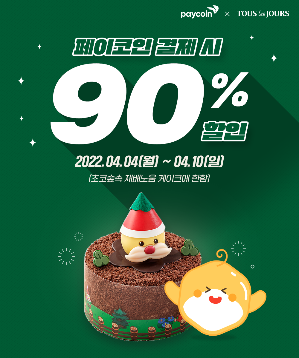 - 케이크 1종 90% 할인(초코숲속 재배노움 1종 한정) : 2022.04.04 ~ 2022.04.10