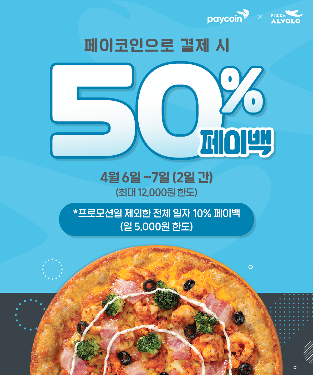 [피자알볼로] 50% 페이백! : 2022.04.06 ~ 2022.04.07